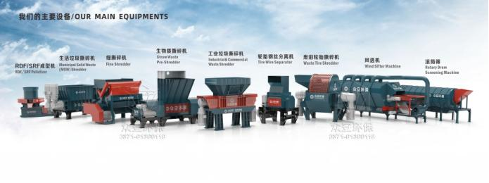 30多種單機設(shè)備:雙軸剪切式破碎機、單軸撕碎機、液壓剪切破、液壓粗破碎機、四軸剪切式破碎機、移動式固廢破碎站、廢舊輪胎鋼絲分離機、輪胎造粒機、輪胎磨粉機、風選機、蝶形篩、滾筒篩等