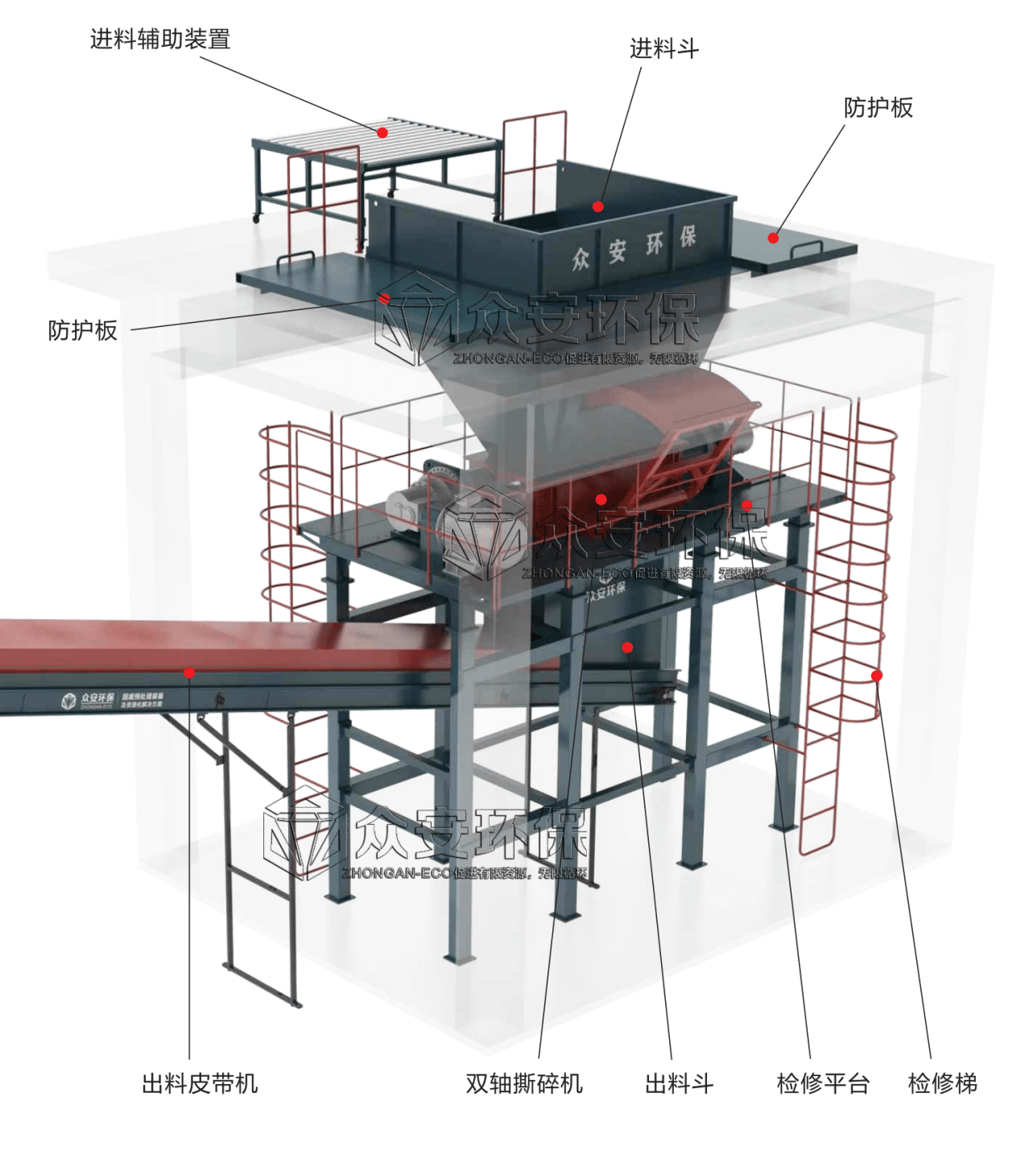 眾安環(huán)保大件垃圾處置系統(tǒng)全程密封結(jié)構(gòu),可以配合負(fù)壓除塵設(shè)計,能夠抑制大件垃圾破碎時粉塵外溢,實現(xiàn)清潔生產(chǎn)。