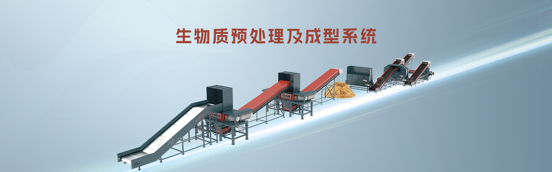 生物質(zhì)預(yù)處理及成型系統(tǒng)集成了破碎、均勻喂料、成型等成套工藝設(shè)備,其中兩級(jí)破碎設(shè)備將物料處置到較小粒度,極大提高了成型機(jī)效率。